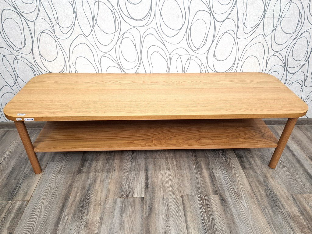 Konferenční stolek. Materiál: nohy buk masiv/dřevotříska potažená fólií. Barva: dekor buku. Rozměry stolku: 150 x 50 x 41 cm (ŠxHxV). Váha cca 15Kg. Prodáváme tak, jak vidíte na obrázcích.
