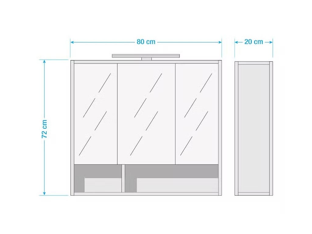 Koupelnová skříňka se zrcadly a světlem Guardo, art. č. 1000021923. Materiál: dřevotříska, potažená fólií a zrcadlové sklo. Barva: bílá /dekor divoký dub. Rozměry: 80 x 20 x 72 cm (ŠxHxV). Váha 21 kg. Prodáváme bez horního LED osvětlení a prvku vypínače/zásuvky. Prodáváme tak, jak vidíte na obrázcích. Doplňky na fotografiích jsou pouze pro ilustraci. 27047A +27023A