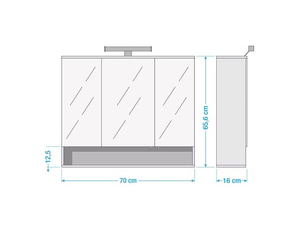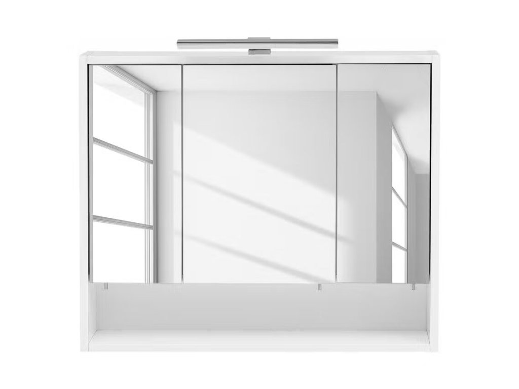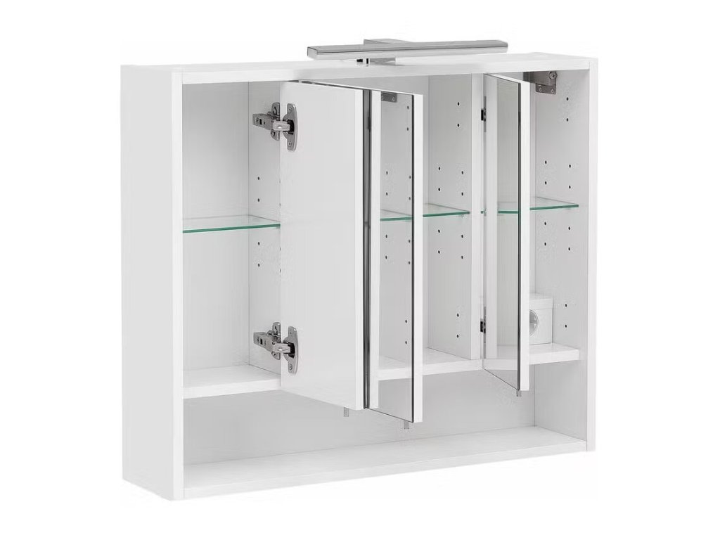 Koupelnová skříňka Kimi, art. č. 1000159978. Materiál: dřevotříska, potažená, zrcadlové sklo. Barva bílá. Rozměry: 70 x 16 x 66 cm(ŠxHxV). Váha 15 kg. Odolný povrch z melaminové pryskyřice. Včetně LED osvětlení. Prodáváme tak, jak vidíte na obrázcích. Případné doplňky na obrázcích a úvodní fotografie je pouze pro ilustraci.