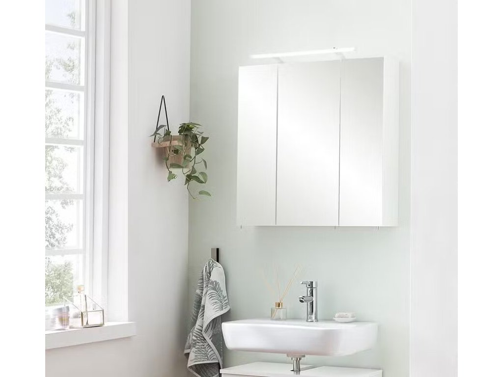 Koupelnová skříňka Dusty I, art. č. 1000087663, závěsná, se zrcadly a LED osvětlením. Materiál: dřevotříska, potažená, zrcadlové sklo. Barva: bílá. Rozměry: 70 x 16x 75 cm (ŠxHxV). Váha 17 kg. Povrch z melaminové pryskyřice. Prodáváme tak, jak vidíte na obrázcích. Případné doplňky jsou pouze pro ilustraci.