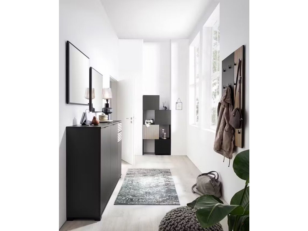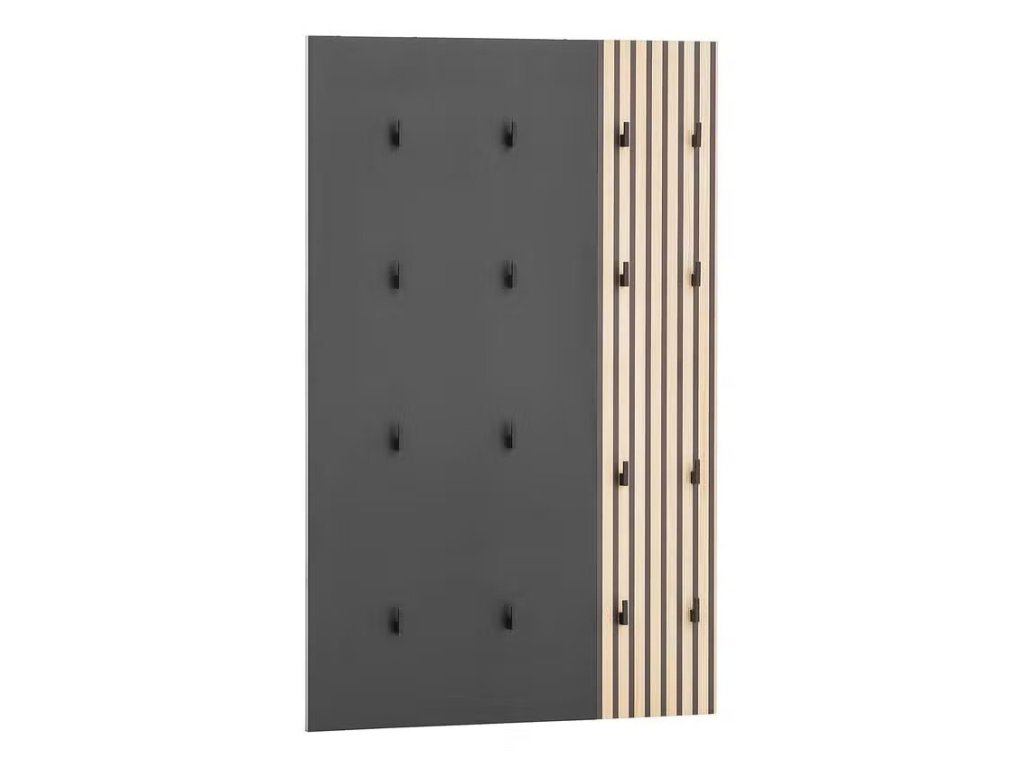 Věšák na stěnu Alexa art. č. 1000424862. Materiál: dřevotříska potažená/ kov, lakovaný. Barva černá/dubová dekorace. Rozměry: 72 x 2,6 x 109 cm (ŠxHxV). Váha 9 kg. 16 háčků na kabáty. Prodáváme tak, jak vidíte na obrázcích, případné doplňky a úvodní obrázek slouží pouze pro ilustraci.