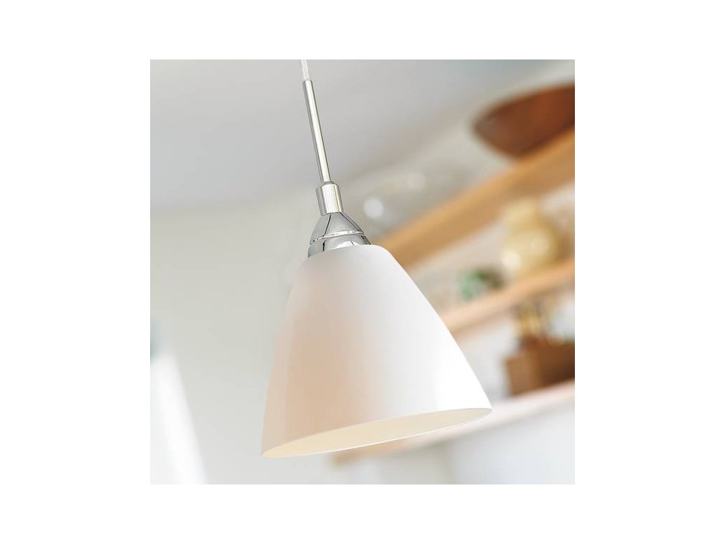 Lustr Read, art. č. 1000069894, Materiál: kov a sklo . Barva: opálově bílá/stříbrná. Rozměry: 20 x 20 x 30 cm (ŠxHxV), délka kabelu 180 cm, výška až 300 cm. Váha 1,8 kg. Patice pro žárovky E27, max 60W. IP 20, 230V.