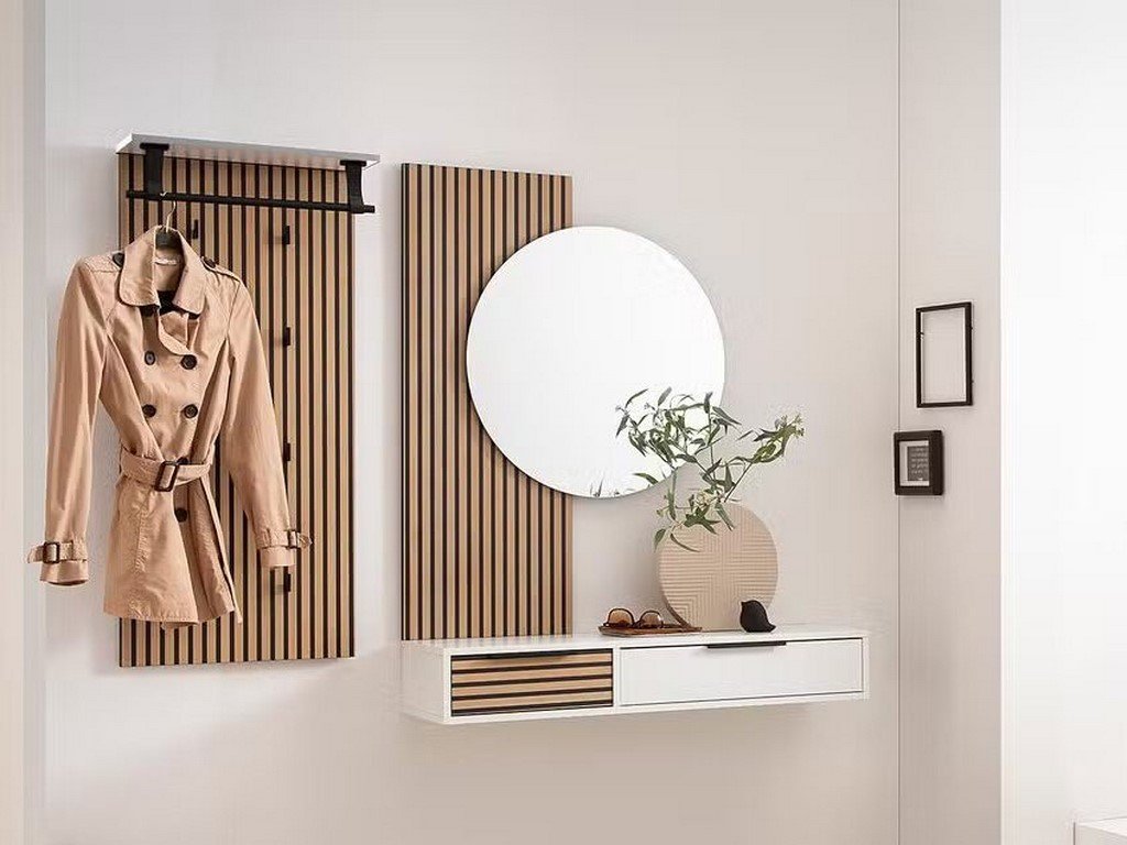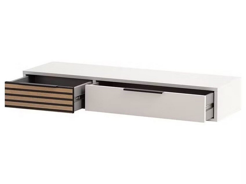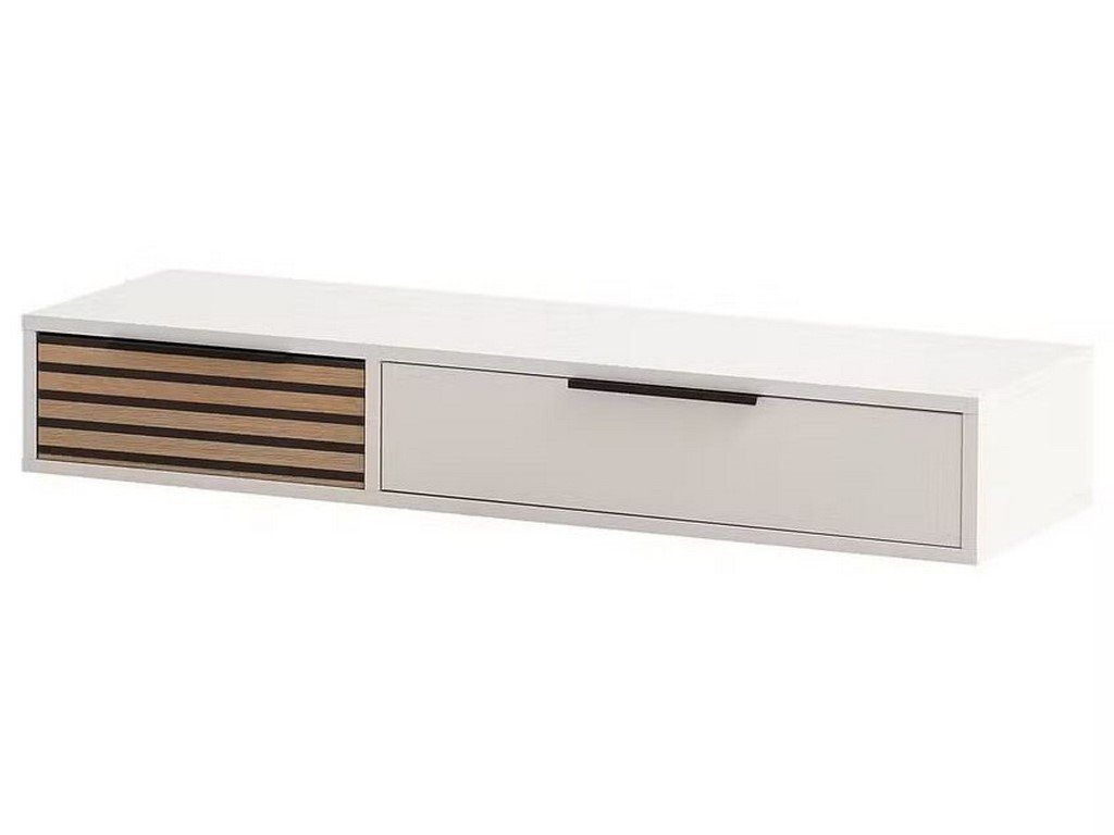 Konzolový stůl Loft, art. č. 1000424841. Materiál: Potahovaná dřevotříska, rukojeti : kov. Barva: bílá/dekor dub. Rozměry: 104 x 16 x 32 cm (ŠxVxH), váha 14 kg. Vnitřní rozměry zásuvek: velká: 58,5 x 10,8 x 25,8 cm (Š x V x H), malá: 33,8 x 10,8 x 25,8 cm. Prodáváme tak, jak vidíte na obrázcích. Úvodní obrázek a doplňky na fotografiích jsou pouze pro ilustraci.