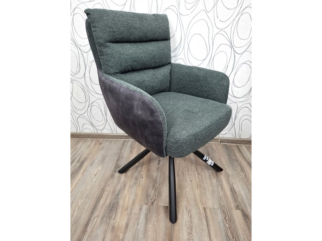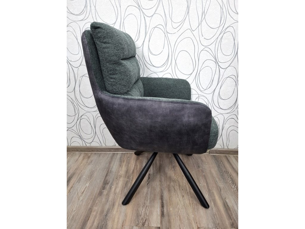 Otočná Židle, křesílko Glama, Materiál: nohy: železo práškově lakované, potah: mikrovlákno, samet. Barva: šedá,zelená/černé (nohy). Rozměry: 44 x 67 x 94 cm (ŠxHxV), šířka sedu 44 cm, hloubka sedu 45 cm, výška sedu 48 cm. Váha 24 kg. Nosnost 120 kg. Prodáváme tak, jak vidíte na obrázcích.